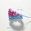 Опять мняем цвет бисера,"набираем" три бисерины (подцепляем бисерины, на которых осталась нитка при убавлении) (рис. 8). Набираем одну бисерину, меняем направление плетения (рис. 9), доходим до места, где бисер ещё не "набран", набираем, подцепляя бисерины с нитками, до конца ряда (рис. 10 - 11).
